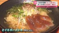 清水港で水揚げされたマグロを長時間煮込んだスープに、中太麺を合わせた一杯。