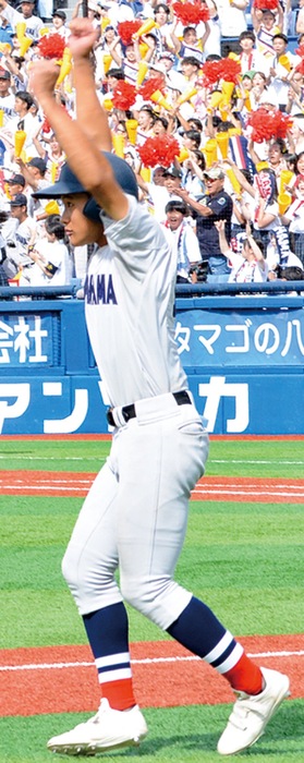 「第107回全国高校野球選手権神奈川大会」の決勝戦が7月27日、横浜スタジアムで行われ、横浜高校=金沢区能見台通=が東海大学付属相模高校に11対3で勝利。3年ぶりに夏の県大会を制して、甲子園出場を決めた。先制を許した横浜だが、「全員野球」で逆転勝利をつかんだ。