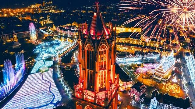 そして原っぱの中心に大きなにぎわいがもたらされると、その流れのまま。いよいよライトアップが点灯の時を迎える。
