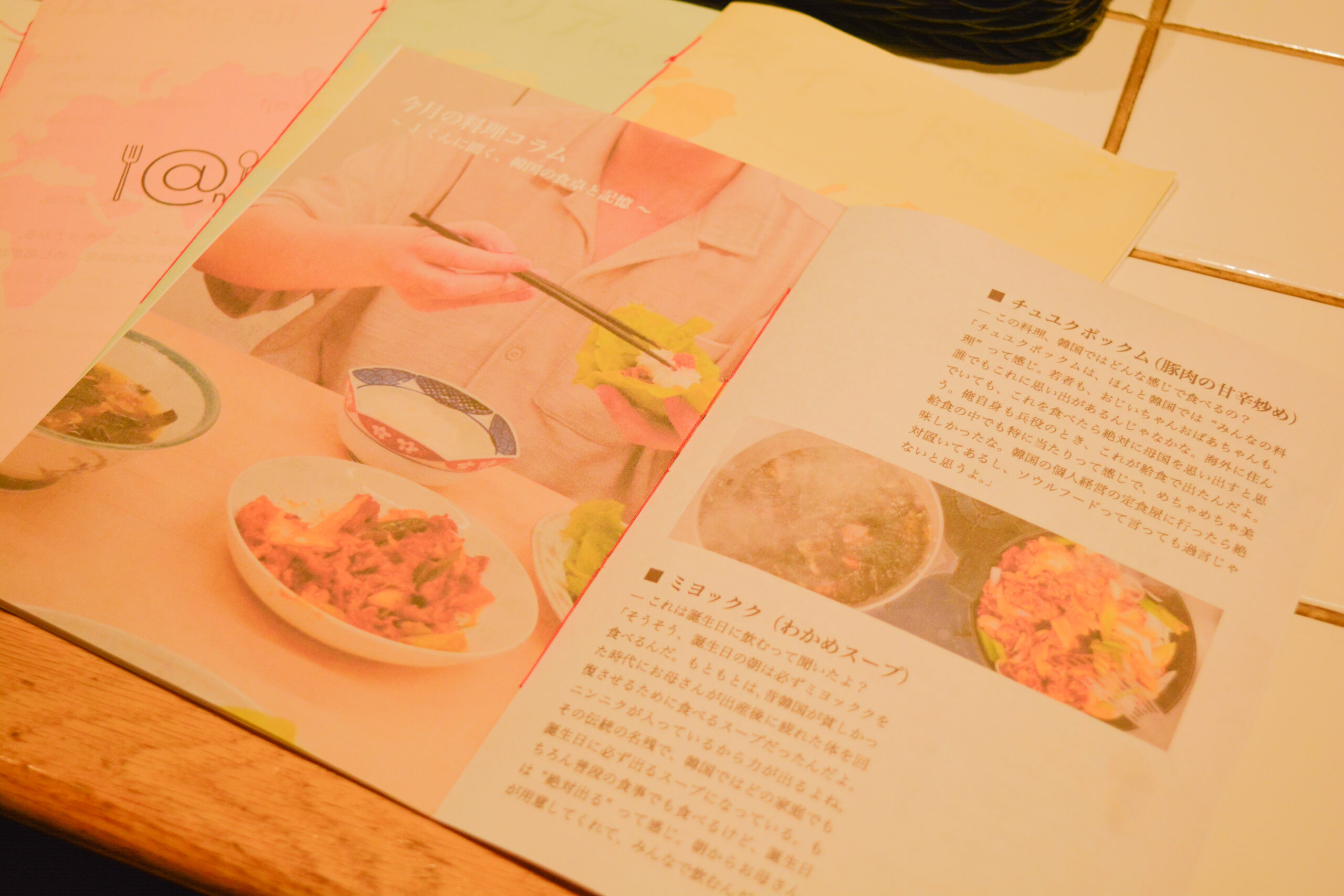 冊子に書かれた料理ごとの物語を読みながら、手作りの各国家庭料理を頂く。
