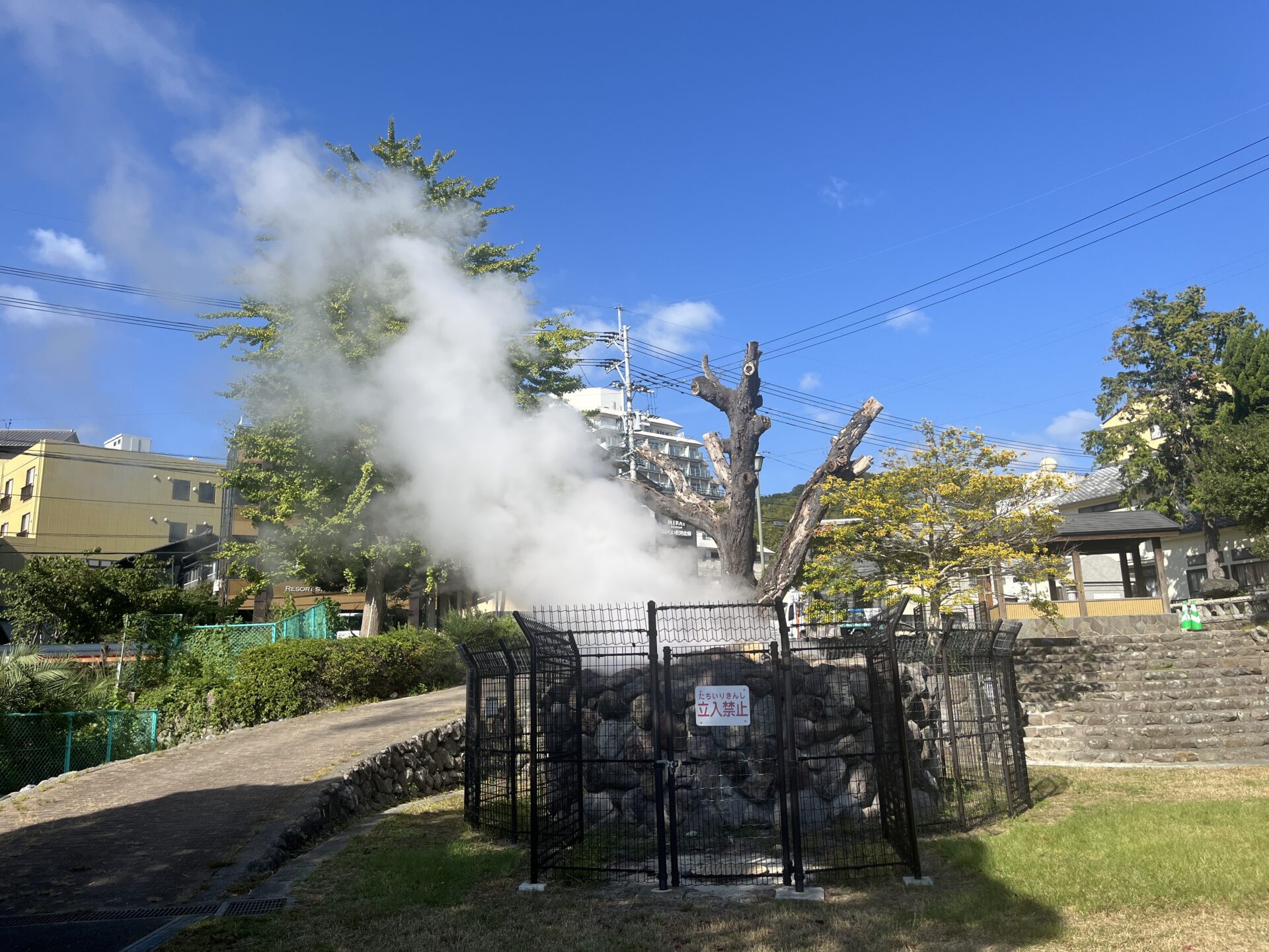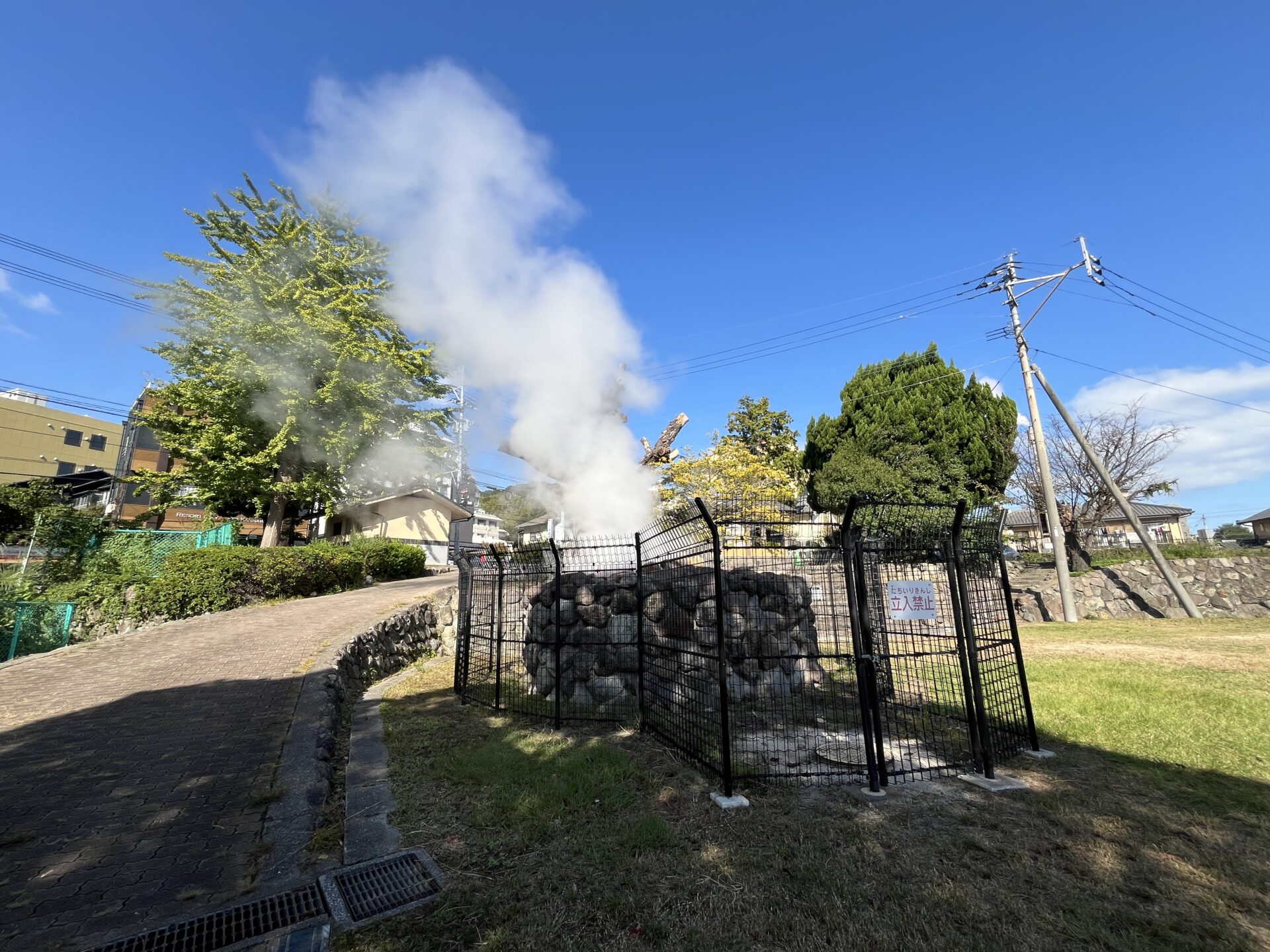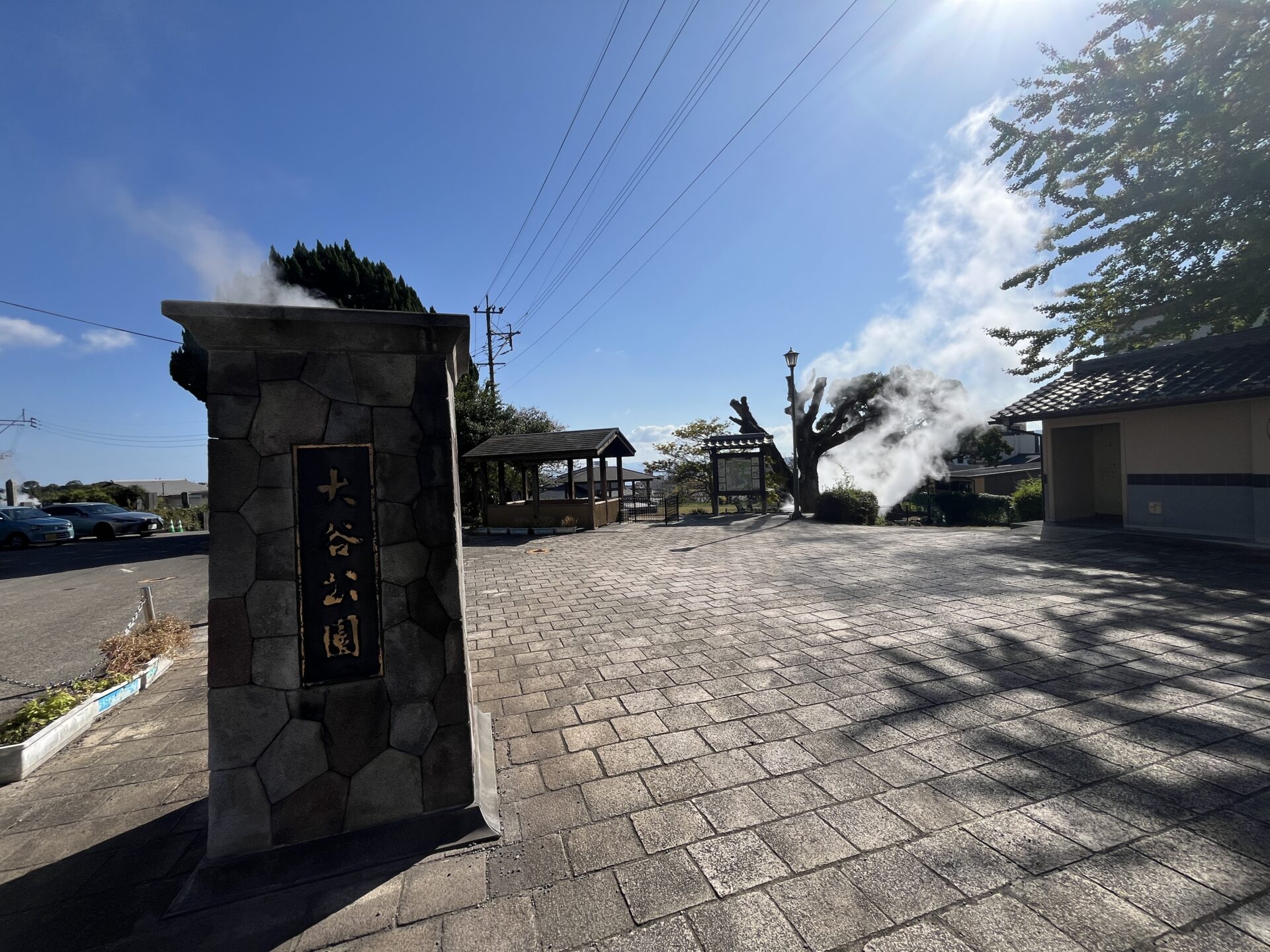 別府市鉄輪にある『大谷公園』は、温泉の恵みとアートを身近に感じられるスポットです。