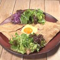 今回は半分に切っていただいた断面をみてもわかる通り、具材がたっぷりと詰まっていてボリュームたっぷりのブリトーです。