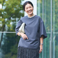 若々しく見えるうえにさりげない着痩せ効果も期待できる一着です。