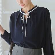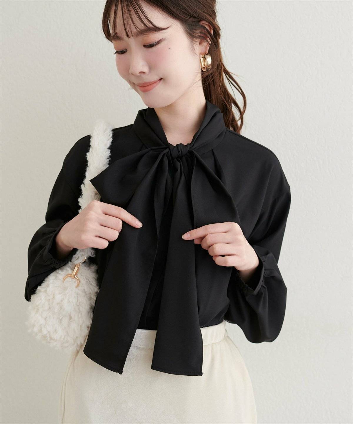 ボウタイブラウスは、顔回りを華やかに見せてくれるので、老け見えしにくいです。