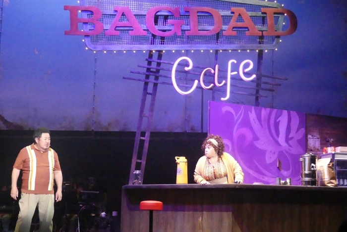 同作品は日本では1989年に公開された映画『バグダッド・カフェ』(監督:パーシー・アドロン)を初めてミュージカル化したもの。脚本はアドロン監督が妻のエレオノーレ・アドロンと共に制作。映画と同じボブ・テルソンがオリジナル楽曲を書き下ろした。日本版は小山ゆうなが演出。「バグダッド・カフェ」の女主人ブレンダ(森)と、そこに現れたドイツ人の旅行者ジャスミン・ムンシュテットナー(花總)との間に芽生えた友情と、モーテルに集う人々の交流を描いている。
