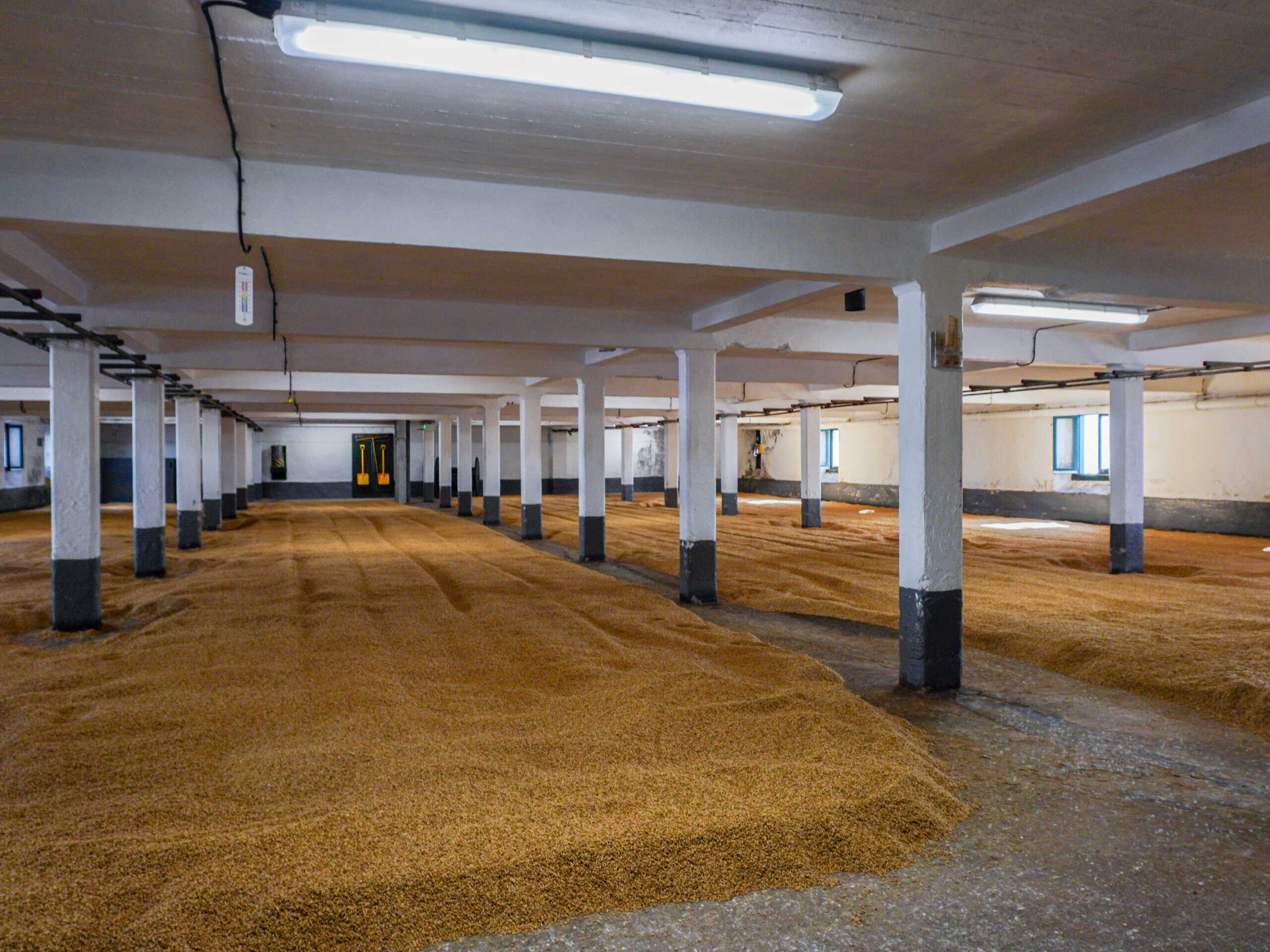 床に大麦を広げ、職人が手作業で撹拌する伝統的な方法です。手間がかかりますが、蒸溜所独自の麦芽を作ることができます。