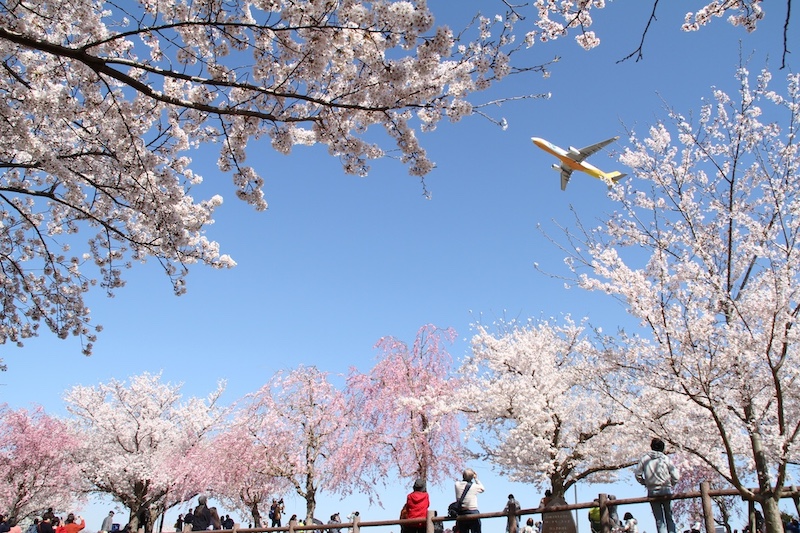 「さくらの山・空の駅さくら館」は空港に近接していることもあり、間近に飛行機の離着陸を見ることができます。