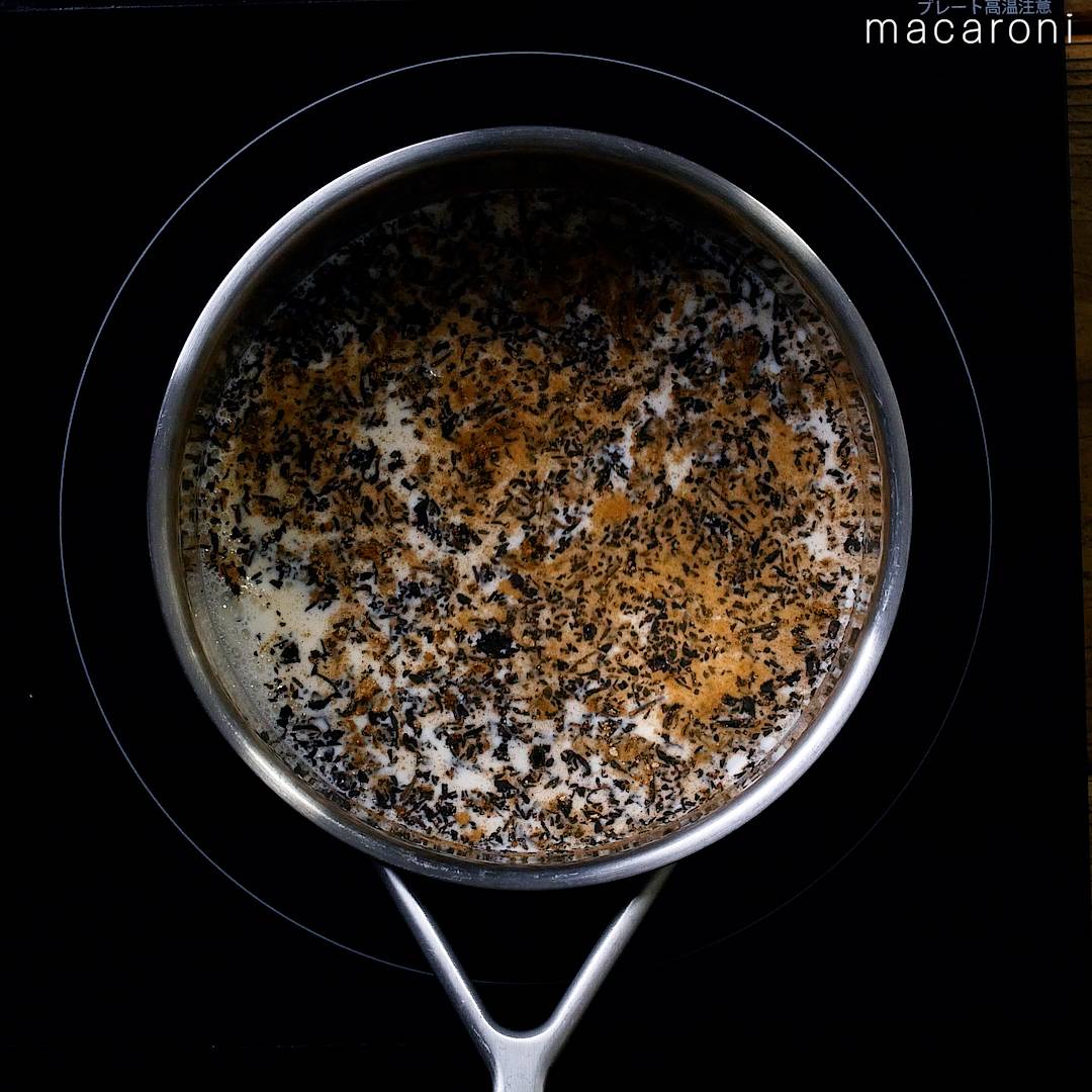 2: 温まったら弱火にして沸騰しないように混ぜながら5分煮ます。