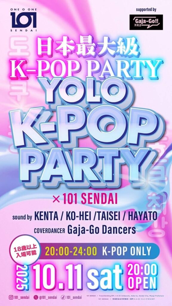 その名も『YOLO K-POP PARTY ×101SENDAI supported by Gaja-Go!!』