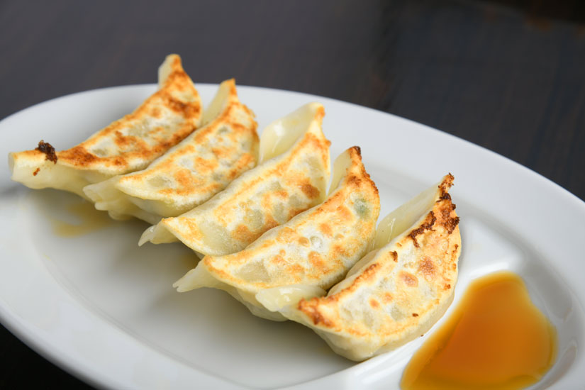 定番の「焼き餃子(5個)」(450円)は、手包みでパリッと焼き上げ、肉汁がジューシーです。