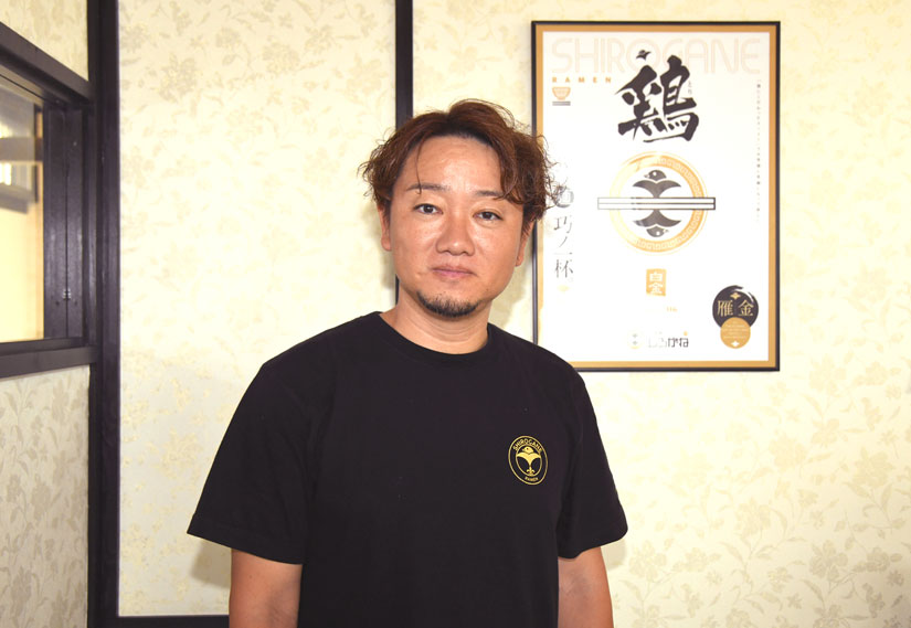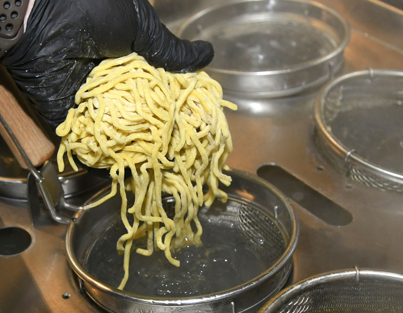 麺は地元「横沢麺業」に注文した太ストレート麺を使用。熱々スープを吸って麺がのびないよう、最後までつるつるっとした食感が楽しめるよう加水率高め。
