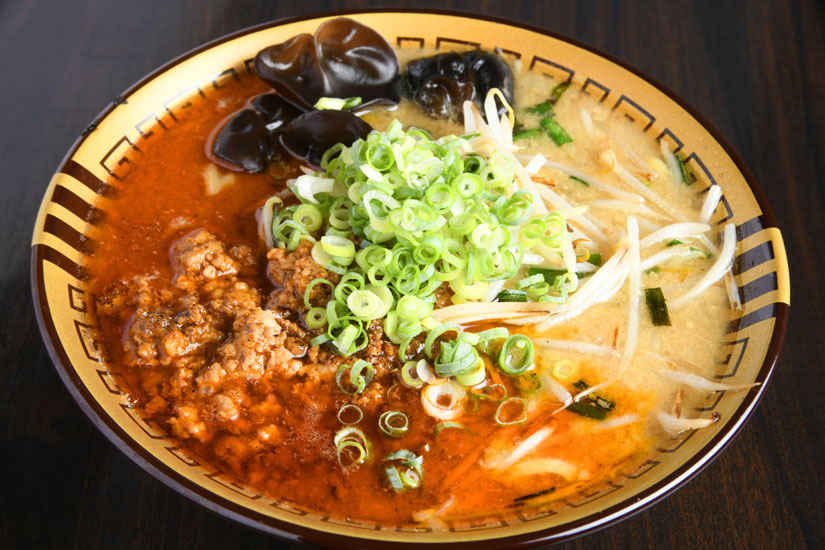味噌ラーメンをベースにした担々麺。ゴマもたっぷりなスープに野菜と肉味噌を絡めて味わいます。山椒の風味を利かせた自家製ラー油を使用。辛さは比較的控えめです。