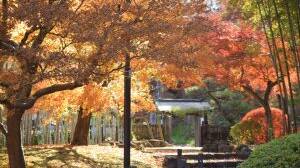 御室に位置する真言宗御室派の総本山で世界遺産『仁和寺』。京都三大門の一つに数えられ、平安時代の伝統を引き継ぐ純和様建築『二王門』をはじめ、五重塔や御堂・金堂など歴史的建造物に映える紅葉風景が展開。さらに、本格登山で紅葉を楽しめる『御室八十八ヶ所霊場』巡拝コースもあり。