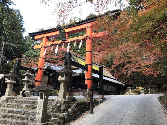 霊峰・愛宕山の玄関口に佇む茅葺屋根と鳥居の紅葉「嵯峨鳥居本」