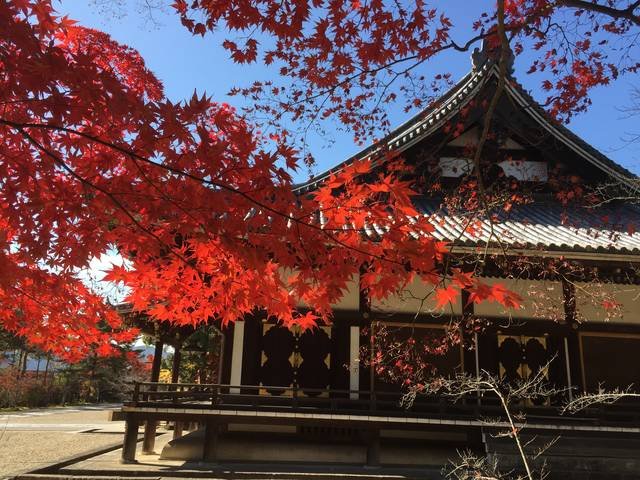京北にある後水尾天皇開創、皇室ゆかりの臨済宗天龍寺派の禅寺『常照皇寺』。納豆発祥地としても有名で、穴場の紅葉スポットでもあり。特に「額縁紅葉」と呼ばれる山門越し景色や方丈庭園の紅葉が見事。山間に立地するため、市内の中でも比較的早い時期に紅葉し始めるエリア。