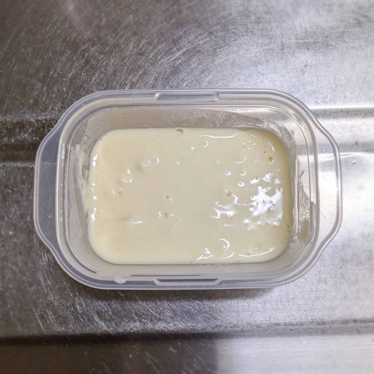 薄力粉と水を混ぜましょう。