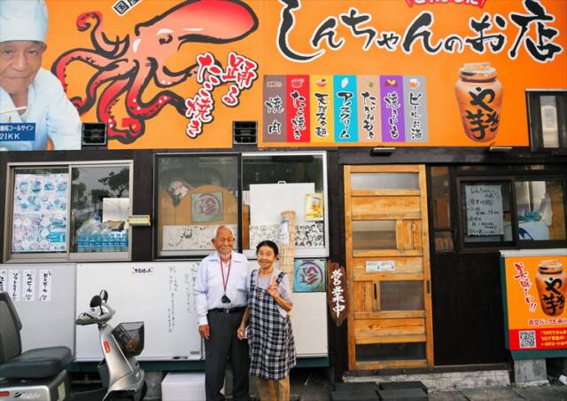 店を切り盛りするのは、「しんちゃん」こと81歳の店主・新井元治さんと、パートで84歳の看板娘・服部正子さんだ。2人の人柄に引き寄せられ、訪れた見知らぬ客同士が自然に会話を交わす。取材時には、動画で店を知って、たこ焼きとソフトクリームを目当てに滋賀県大津市から2時間かけて男性が訪れていた。店内にある客の書き込みノートには、九州や海外からの記録も残り、遠方からの「わざわざ客」も少なくない。