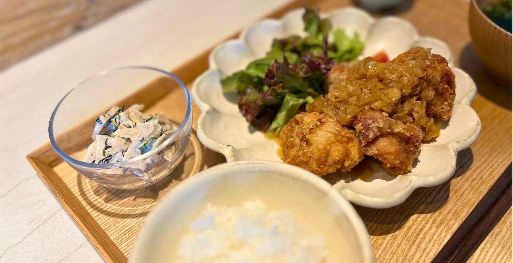 「HACO CAFE」の日替わりメニューは「野菜をたっぷり使って、身体に優しいご自愛ランチを楽しめる」というコンセプトで、毎週店舗公式Instagramで配信されています。店長さんによると、油淋鶏の他にも山口県のご当地メニュー「チキンチキンごぼう」やチキン南蛮が人気だとか。