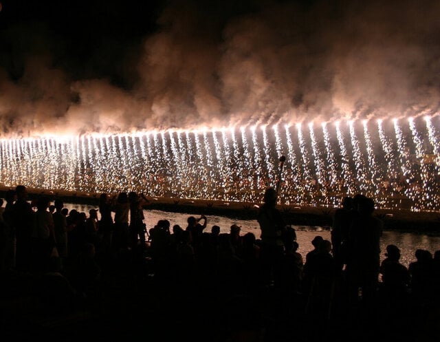 そして、大花火大会のラストを飾るのは加茂川に架かる橋を利用した“加茂川縦断大ナイアガラ”!