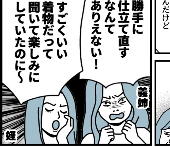 兄の妻と娘から責め立てられるトモさん。なんの約束もしていないのに責められるいわれはありませんよね。勝手な約束をしただけでも腹立たしいのに、妻が成人式に振袖を着せてもらえなかったことを盾にするなんて。身勝手な兄家族の言動、どこからどう手をつけたらいいのやら。