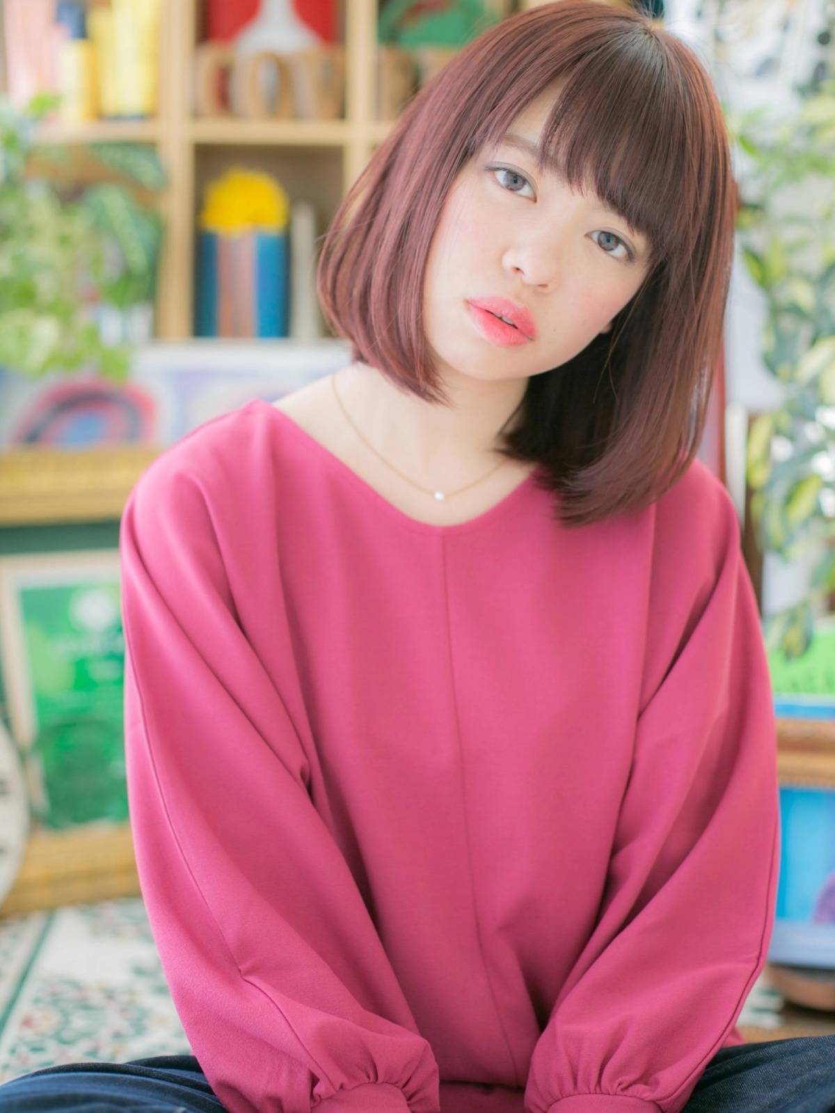 ピンク系カラーのボブは、髪がつややかに見えるところが魅力♡