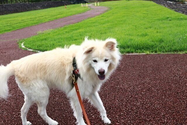 初めての場所を散歩するだけで、大福はニコニコだった。曇りだったが、その方が気温が上がらずありがたい。何もないところを、ただ景色を眺めながら歩くだけ。それで大福は大満足らしい。