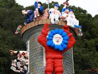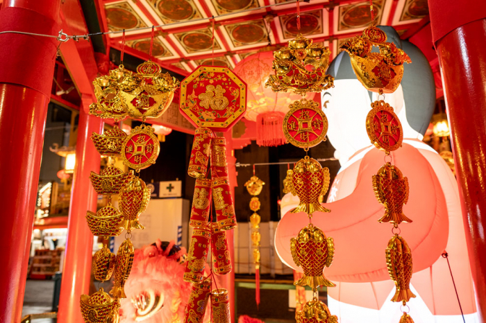 あづまやには、“お金の神様(小財神)”である『財財(サイサイ)』と『來來(ライライ)』のバルーン人形が登場。