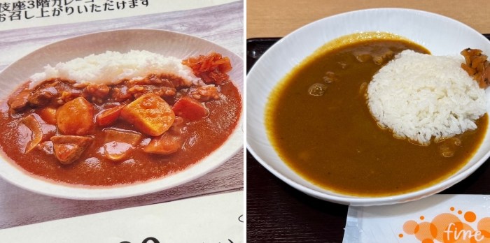 運ばれてきたカレーを見て驚愕した。写真と比べると、具がほとんど入っていない。ライスの横に申し訳程度に添えられた福神漬けと、シンプルなカレールーが皿を占めていた。