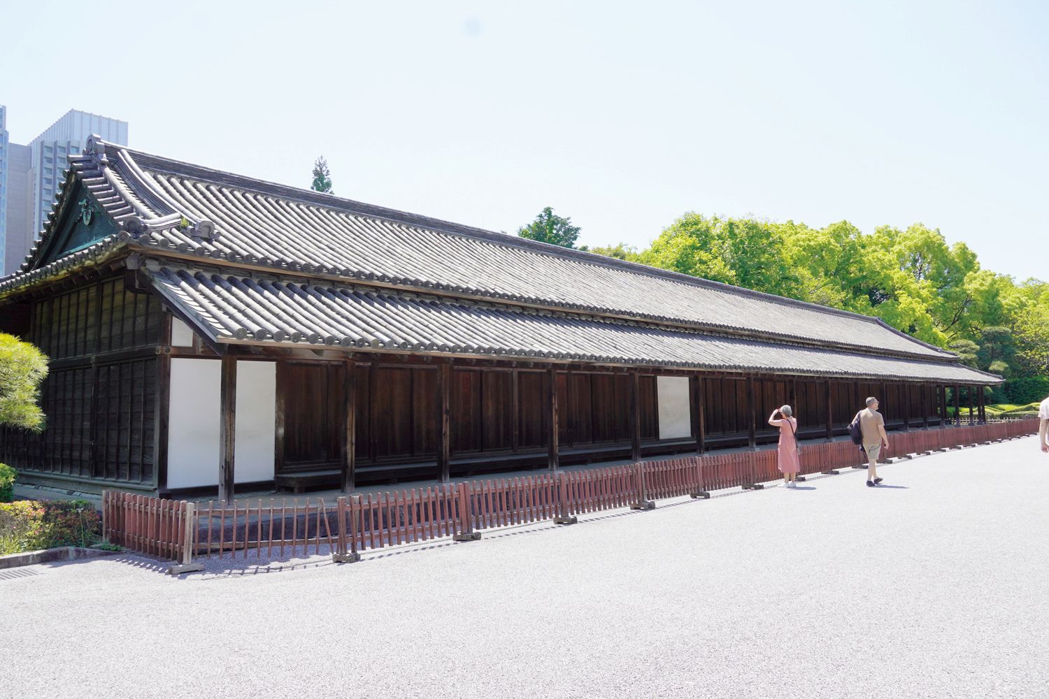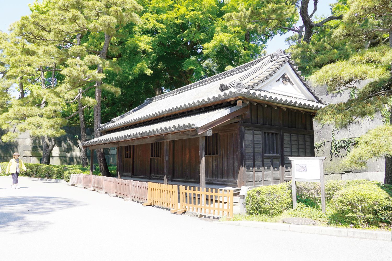 園内に3カ所残る番所(警備詰所)のひとつ。江戸時代は大手三の門(現三の丸尚蔵館)より外にあり、江戸幕府の下級役人である同心が詰めて登城者の監視を行っていた。菊の御紋や葵の紋が記される瓦もある。