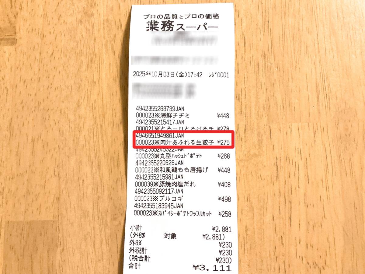 今回購入したのは、「肉汁あふれる」という名前が印象的な餃子です。