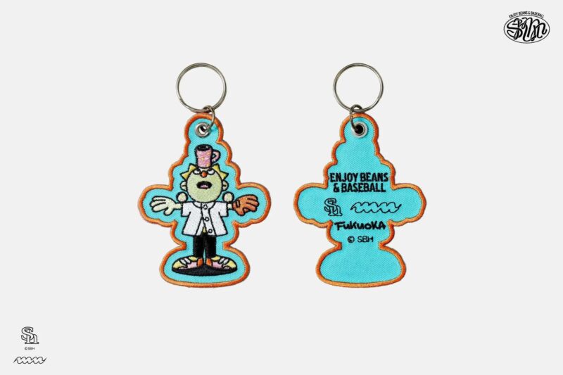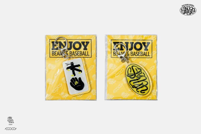 “ENJOY BEANS & BASEBALL”のロゴとアイコンのアクリルキーホルダー。こちらもお気に入りのバッグやポーチにつけて楽しみたいアイテムです。