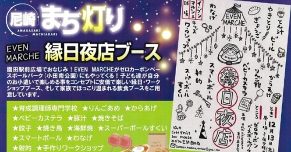 12月13日、ゼロカーボンベースボールパーク(尼崎市)で「尼崎まち灯り」が開催されます。入場無料、事前申込不要。
