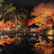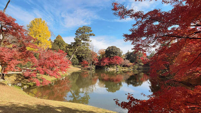毎年11月中旬から下旬にかけては、約3000本の木々が赤や黄色に染まり、園内全体が鮮やかな色に包まれます。11種類のカエデがあるといわれ、葉の形や色の違いを見比べながら散策するのも一興。中でも「もみじのトンネル」と呼ばれる参道と待月橋の共演は、一度は目にしてほしいです。期間中はイベントや夜間ライトアップも行われ、一日中満喫できます。
