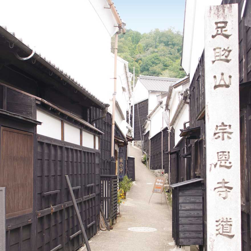 蔵が連なる「マンリン小路」。漆喰と下見坂のコントラストが印象的です。