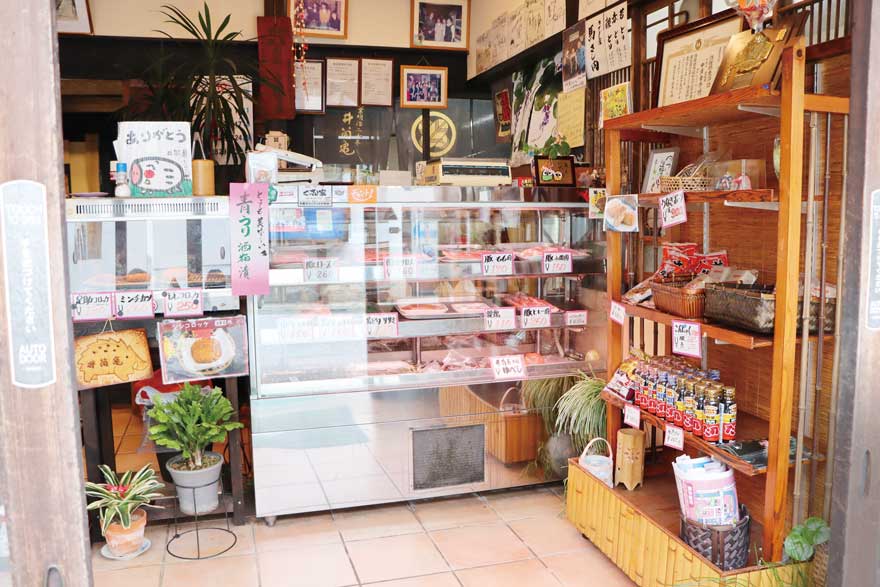 うなぎやシシ鍋を提供している、明治20年創業の老舗「井筒亀」。その本店の味をカジュアルに楽しめるのが、「井筒亀精肉店」です。お肉のほか、野菜の天ぷらや煮物など、食卓を彩る総菜がそろっています。
