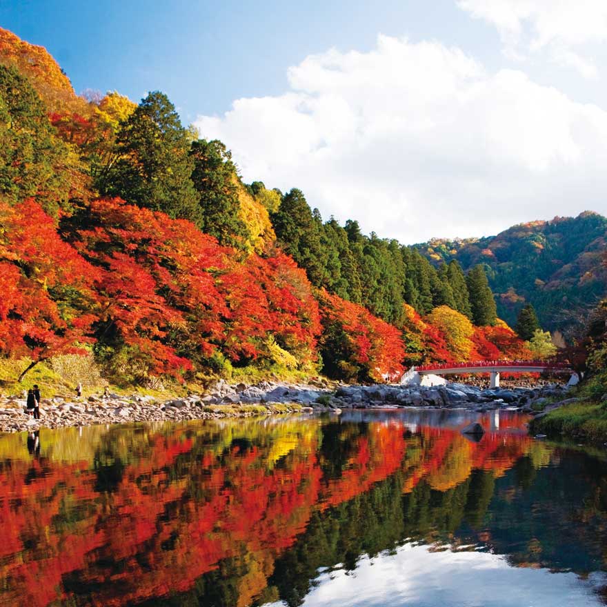 「香嵐渓」は、定番の紅葉はもちろん、四季折々の山野草も楽しめる人気スポットです。