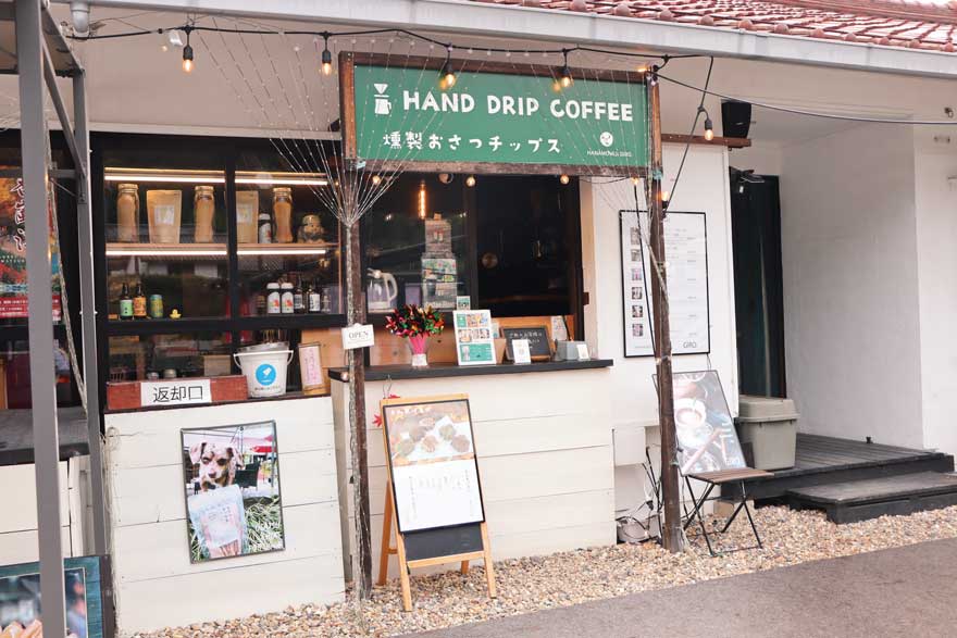 「はなもみじGIRO.」は、店外にはテラス席もあり、散策のひと休みにもぴったりです。秋の味覚を片手に、散策を楽しみましょう。