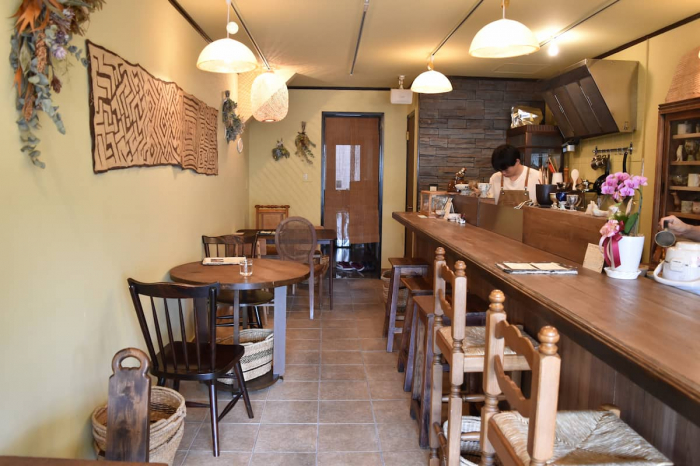 店内にはカウンター席とテーブル席が3つ。デザインが異なるものが集まっているのに不思議と統一感があります。