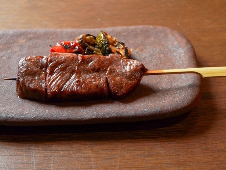 馬車道駅から徒歩3分の【十六夜】は、シェフ渾身の独創的な串料理を堪能できるお店です。厳選されたブランド牛の肉質の良さを感じ、その旨みに魅せられる『本日の銘柄和牛A5牝牛 イチボ』は、ぜひオーダーしたい逸品。魚介や季節の野菜を使った、ほかでは味わえないフュージョン料理も楽しめます。