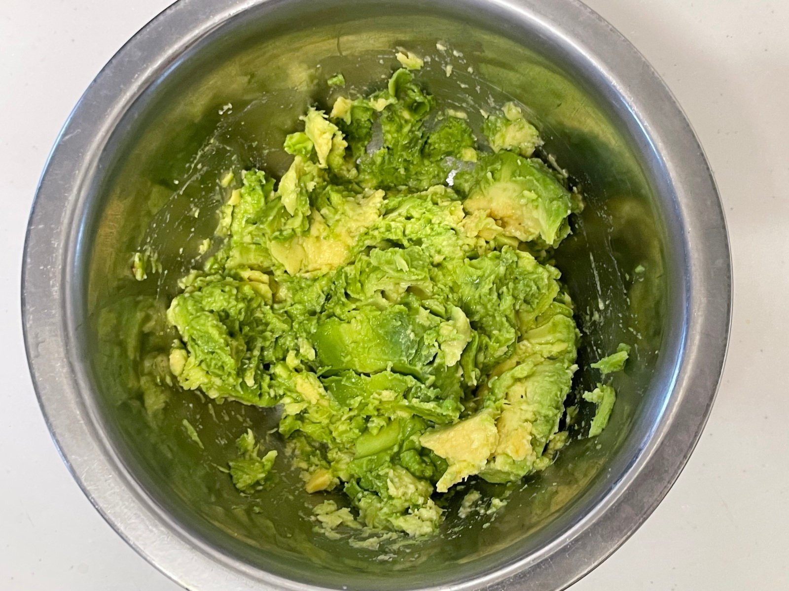 アボカドは皮を剥いたら種を取り、粗くつぶします。