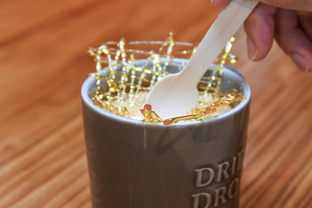 上にのった飴細工はスプーンで割って、温かいうちに溶かしながらラテと一緒に楽しむのがおすすめ。