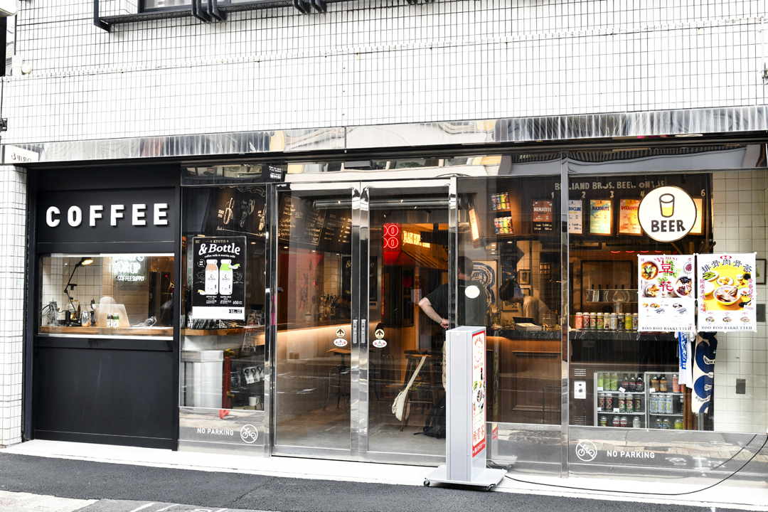 京都を中心に、自家焙煎の豆で淹れるコーヒーの楽しさとおいしさを届ける「DRIP & DROP COFFEE SUPPLY」。2023年4月にオープンした寺町店は、コーヒースタンドに加えて自社クラフトビール「Bighand Bros. Beer」のタップルーム、バクテー専門店「BOO BOO BAKKUTTEH」も併設した、まるで“飲むこと、食べることのテーマパーク”のような楽しいスポットになっている。