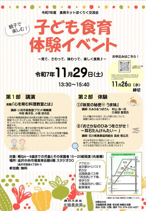 【金沢・イベント】11/29(土)「子ども食育体験イベント」を開催!見て、さわって、味わって、親子で楽しく食育を学ぼう♪