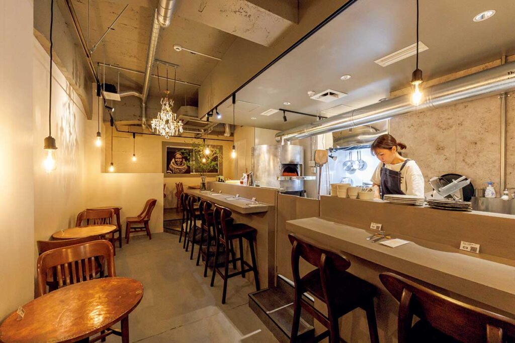 薪窯で焼き上げる、食感・香り・味わいが絶品のピッツァ前菜や一品料理など、ワインに合うメニューも充実落ち着いた空間で、女性ひとりでも気軽に利用できる