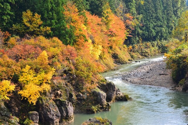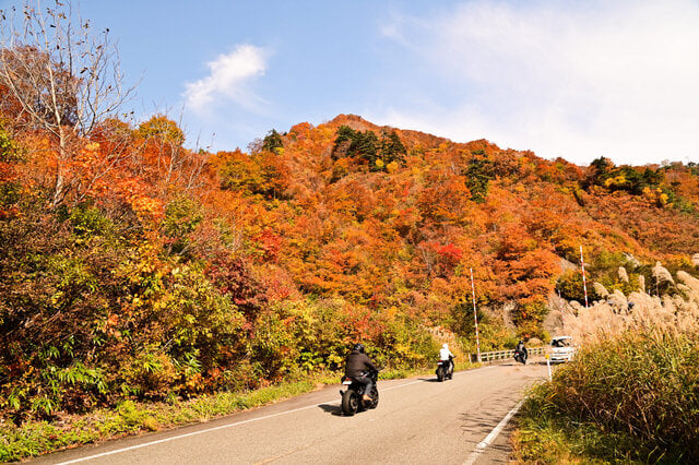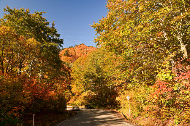 新潟県と福島県に通じる古くからの峠道で、ドライブやツーリングをしながら鮮やかな紅葉を楽しむことができるんです!