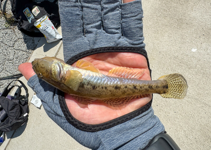 そして2投目でもアタリがあり、今度はしっかりとフッキングができた感触、待望のハゼをゲット!泥底の色を帯びた薄茶色の可愛いハゼが顔を見せてくれました。サイズは10cm程度と大きくはありませんでしたが、自分で釣り上げたハゼは格別です。