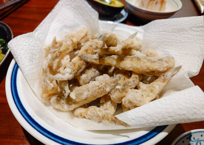 美味しそうなハゼの天ぷら(※知人夫婦からいただいた写真です)