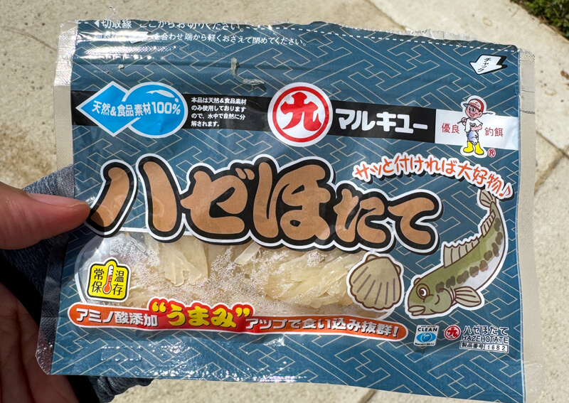 ルアーのほか、エサは人工エサの「ハゼほたて(マルキュー)」を使用してみました