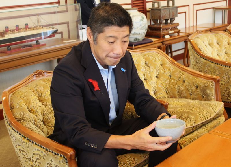 三重県四日市市の四日市商工会議所で11月、「四日市の伝統・文化の共演 萬古焼とお茶を楽しむ会」が開かれる。その実行委員長を務める陶芸家の清水醉月さんと四日市茶道連盟理事の前川温子さんらが10月17日、市役所に森智広市長を訪ね、準備状況などを報告した。当日、会場で展示もする森市長自らろくろを回した茶碗も釉薬を施して焼き上がり、その出来栄えに森市長自身が驚きを見せていた。