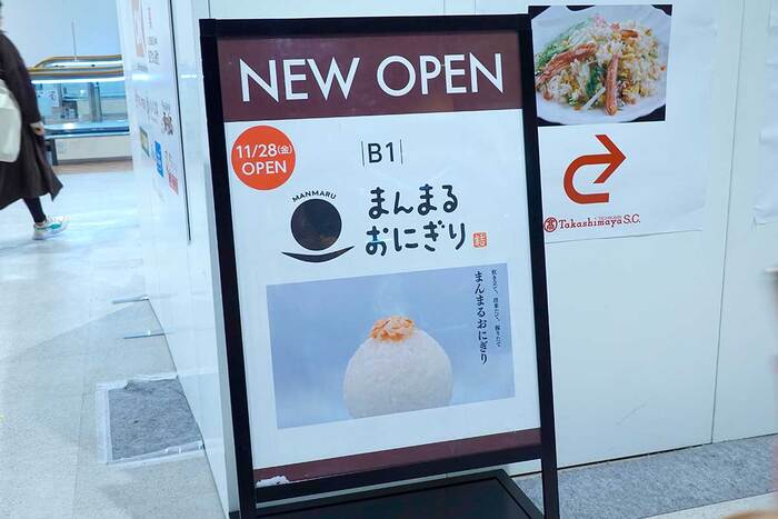 立川高島屋S.C.地下1階に『まんまるおにぎり』というお店が11月28日(金)にオープンするようです。